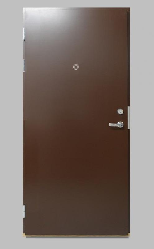 Korteri välisuks EI30; Rw37-39dB; Sa/S200, värvitud tumepruuniks (RR32), hinged 3tk, sile, kroomitud lukukomplekt ASSA AN565Cr koos lingiga ning viie võtmega. Uksesilm on kõrgusel ca 1550 mm.